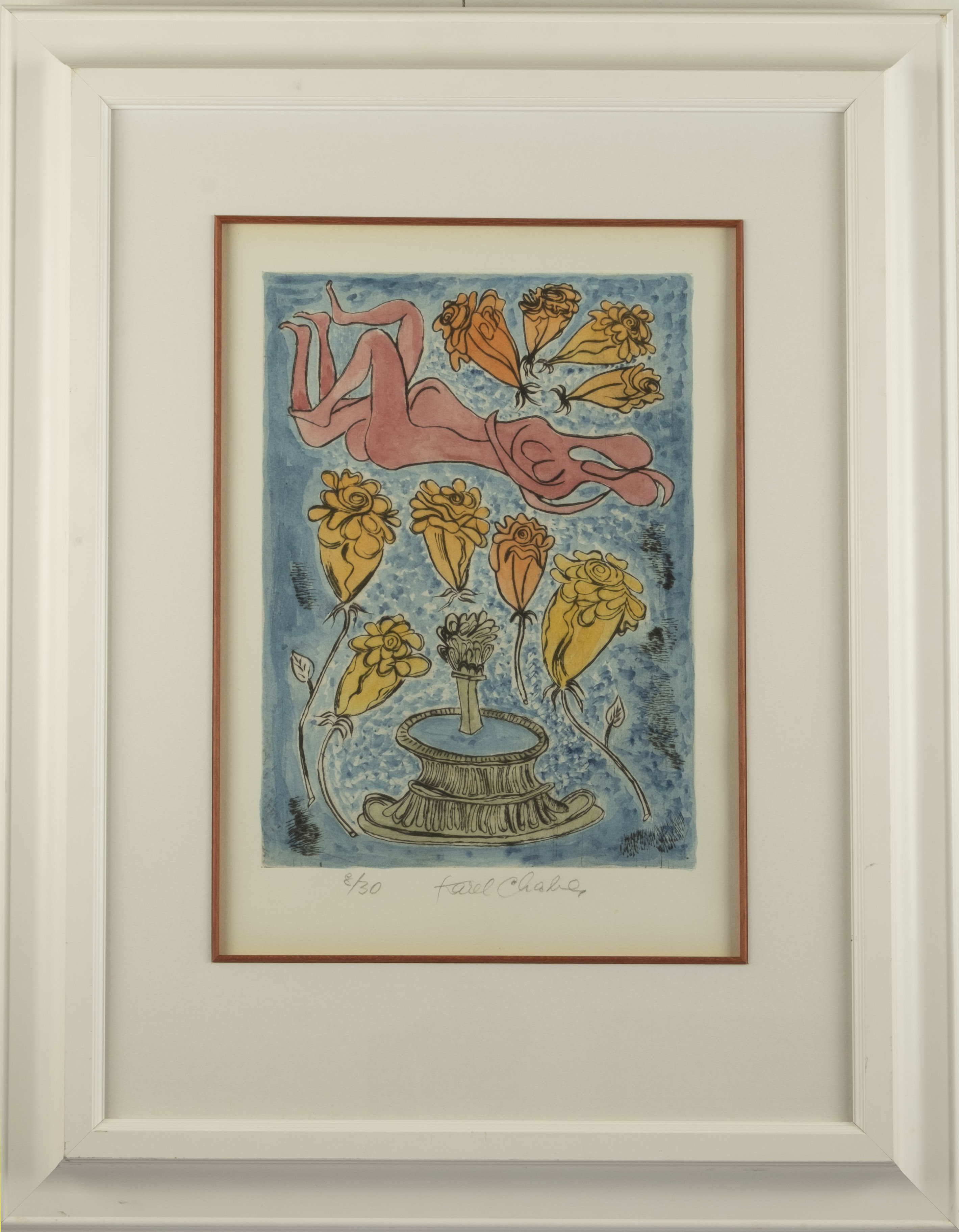 Karel Chaba, kolorovaná suchá jehla, adjustováno, sklo