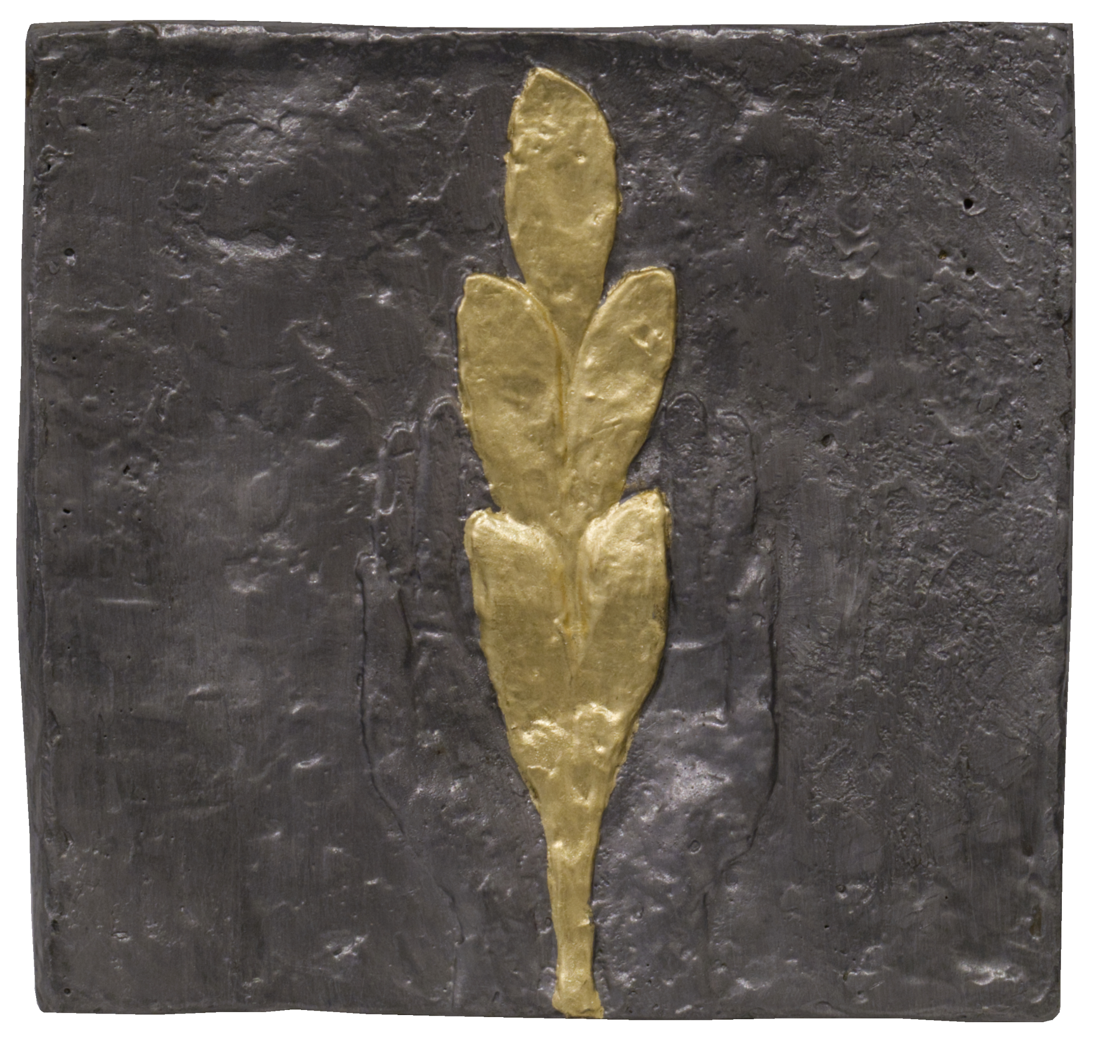 Olbram Zoubek zlacený reliéf Ruce s ratolestí, signatura vpravo dole, posouzeno nadačním fondem Kmentová Zoubek.