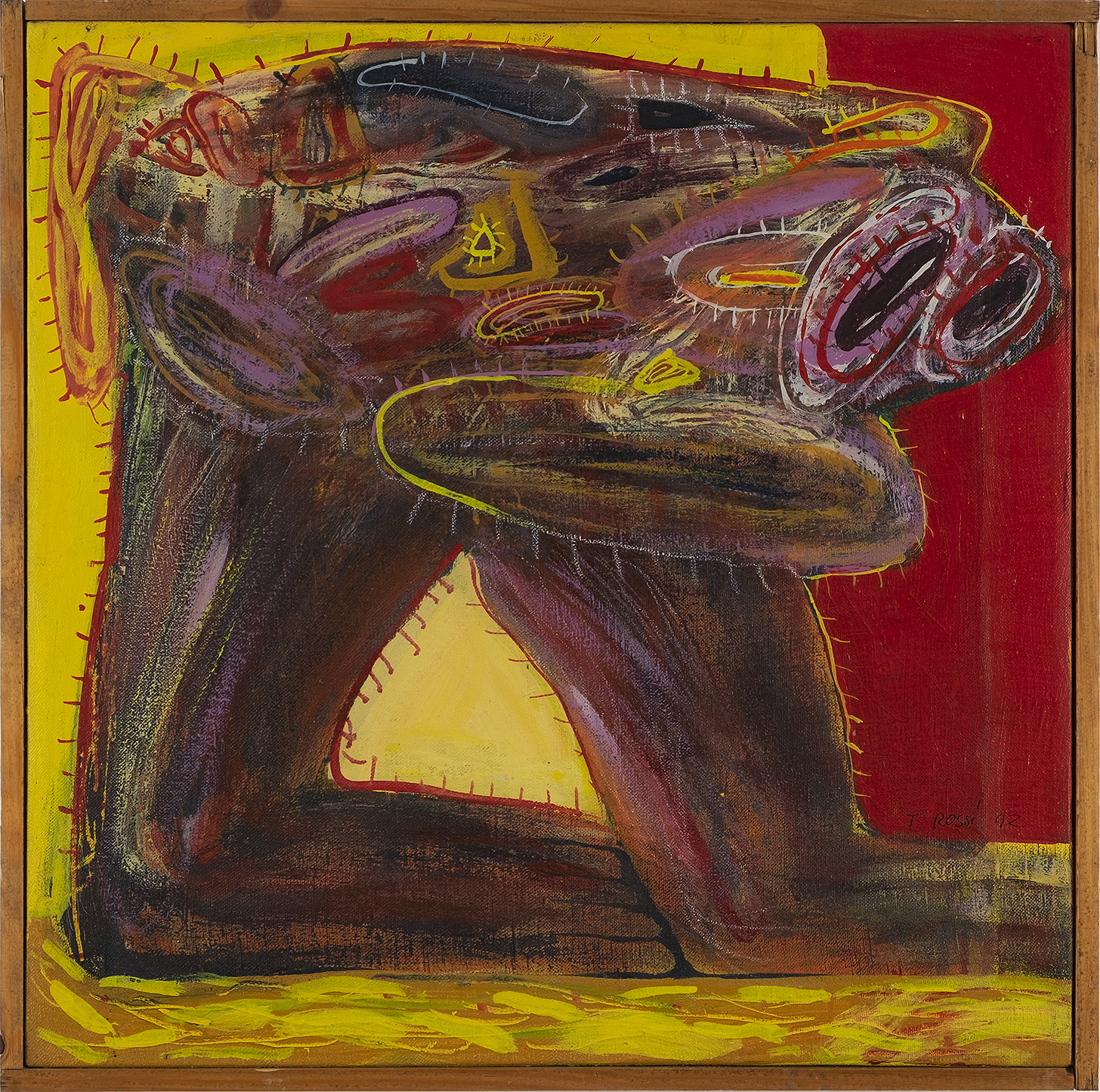 Abstraktní obraz na plátně, akryl, kombinovaná technika, signatura vpravo dole.